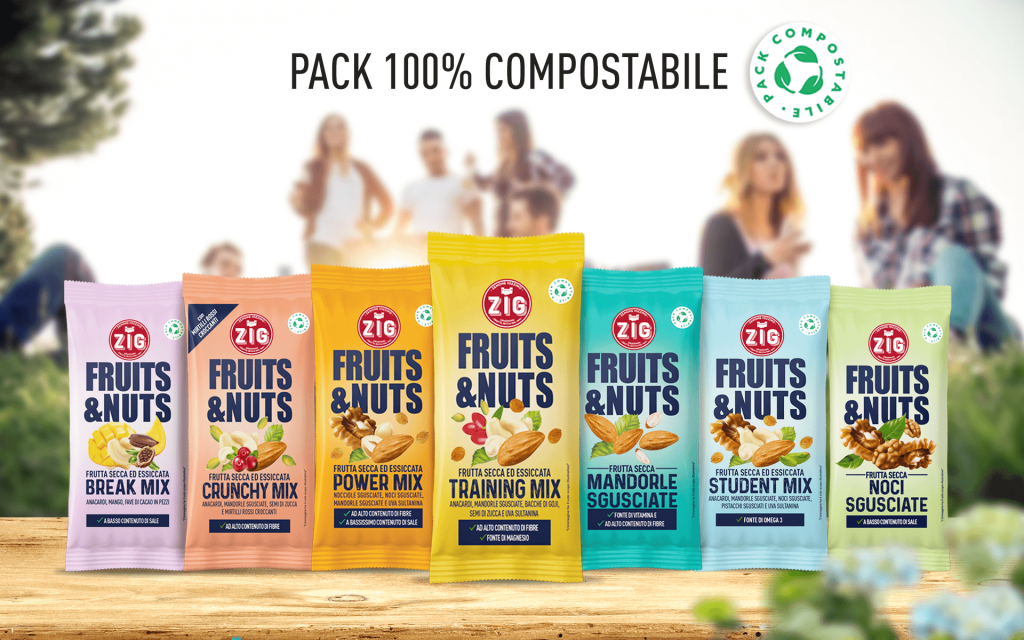 “The choice of the compostable single-portion pack was received with great interest. Consumers are increasingly aware and informed whenever they make a purchase, they choose quality products and prefer environmentally friendly companies”, says Domenico Iozzino, the current owner of ZIG, “being a healthy snack that offers just the right amount of nutrients, the line Fruits & Nuts manages to satisfy the tastes of all consumers.”